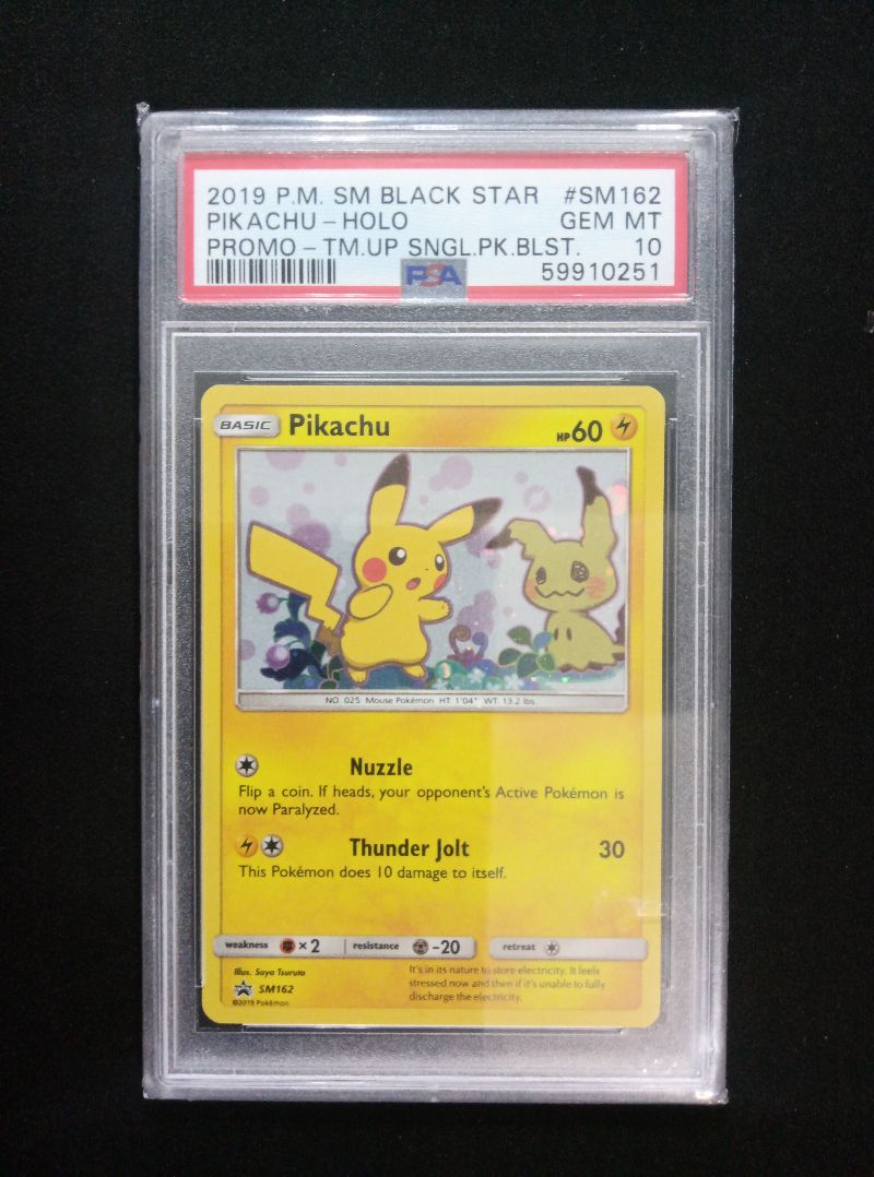 Pokemon TCG Card: 2019 POKEMON SM BLACK STAR PROMO #SM162 PIKACHU-HOLO PROMO-TM.UP SNGL.PK.BLST. (PSA 10) Set: Card Number: Grading Company: PSA