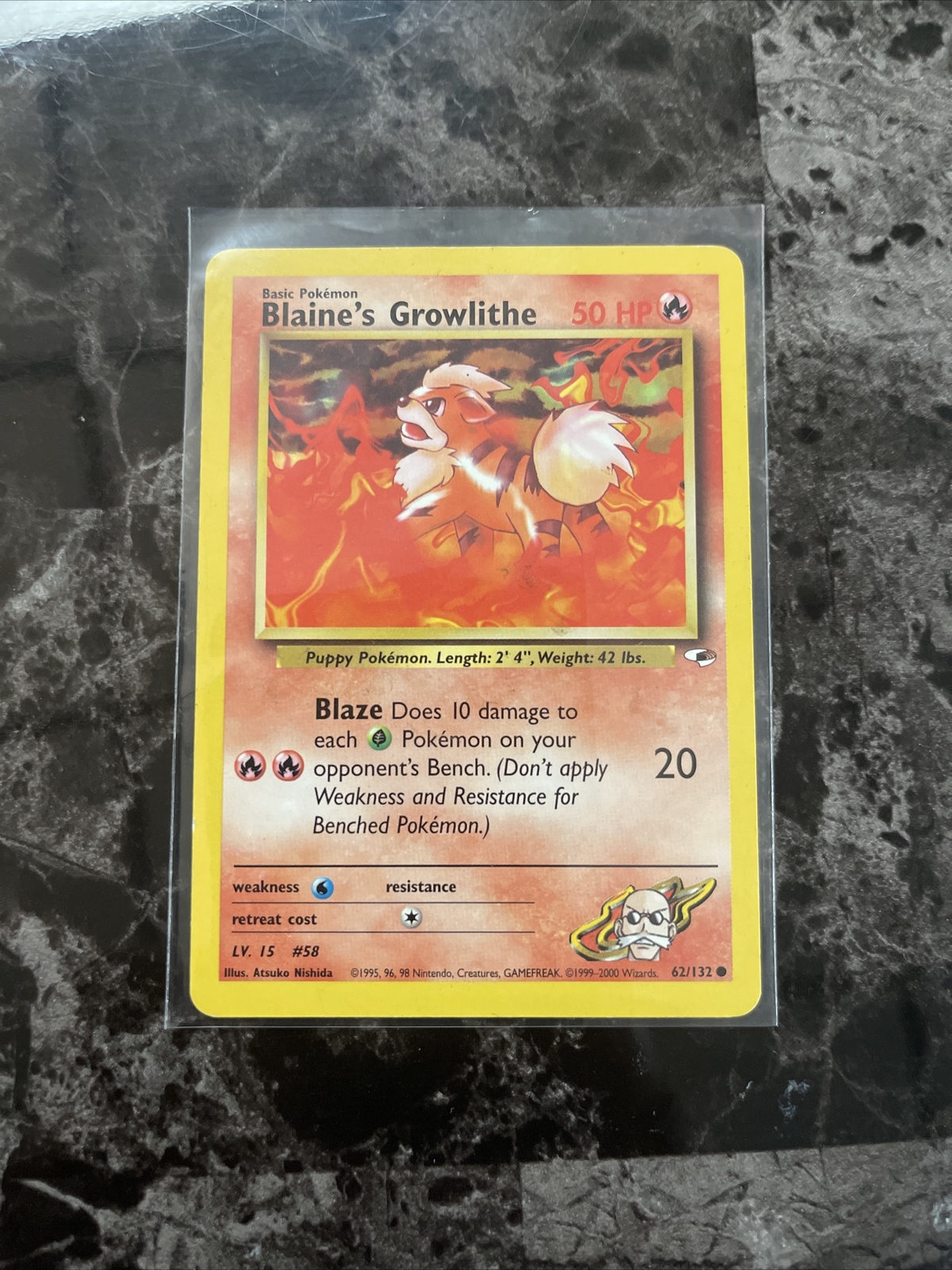 Pokemon TCG Card: Blaine’s Growlithe Set: Gym Heroes Card Number: 062/132